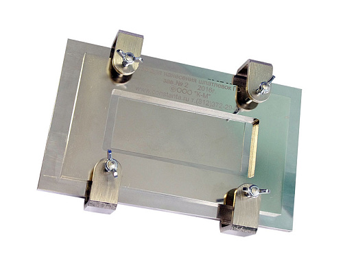 Аппликатор представляет собой металлическую пластину с прямоугольным отверстием. Высота отверстия (толщина пластины) определяет толщину наносимого слоя.