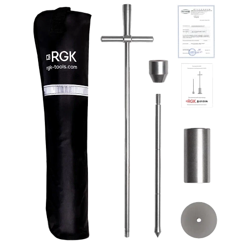 Ключевое отличие плотномера динамического RGK Д-51А от базовой версии - наличие в комплекте штампа диаметром 100 мм, который необходим для замеров на влажных глинистых грунтах, и для реализации метода двойного зондирования, который применяется при контроле уплотнения без проведения измерения влажности. В этом случае глинистый грунт испытывают в двух состояниях: исходном и после дополнительного уплотнения.