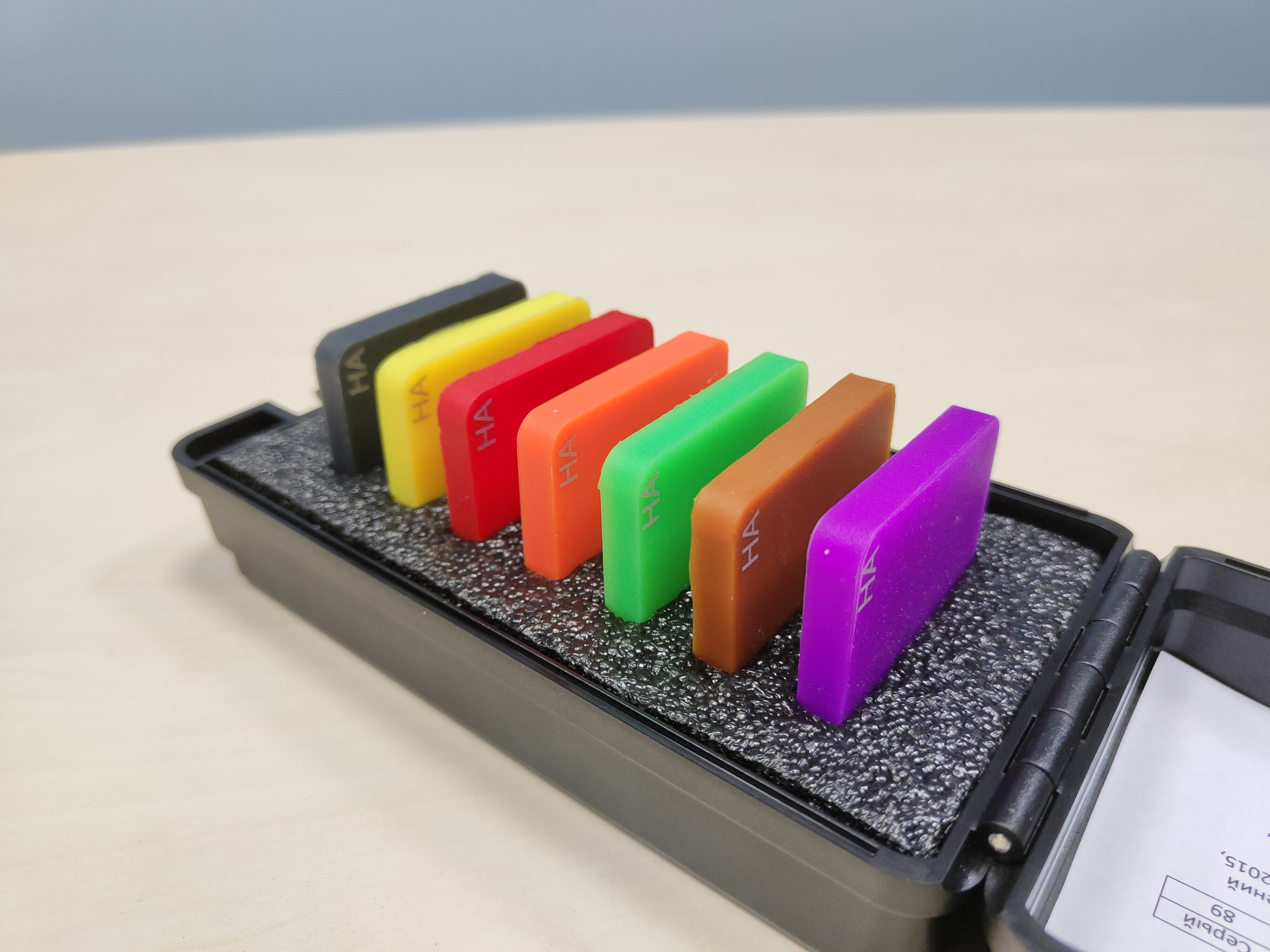 АВМ ША Комплект мер твердости по Шору А предназначен для контроля исправности и точности показаний переносных и стационарных твердомеров резин и пластмасс по шкале твёрдости Шора тип А (HA)